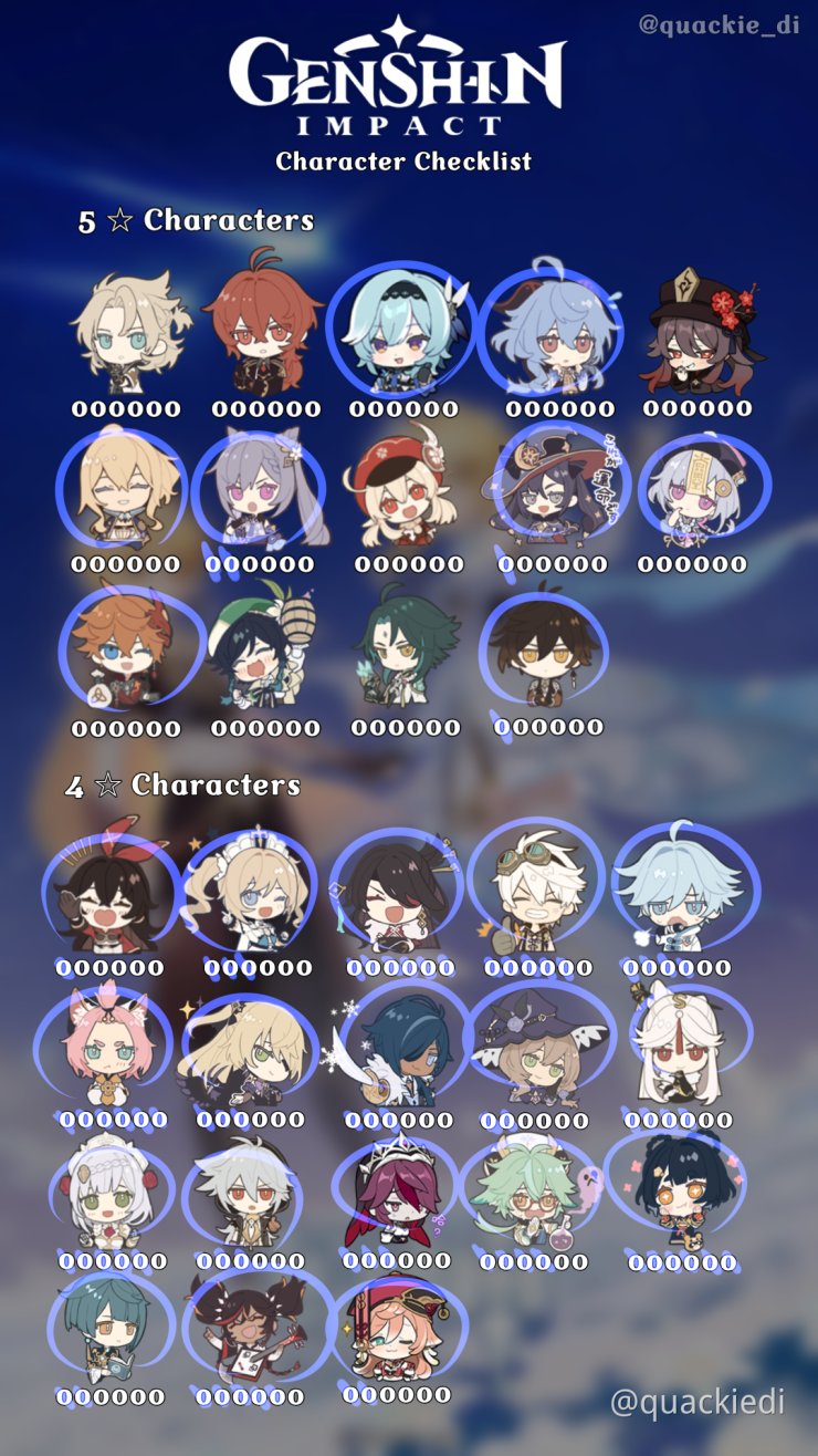 Ximie on Twitter "Genshin character checklist from hoyolab website uvu