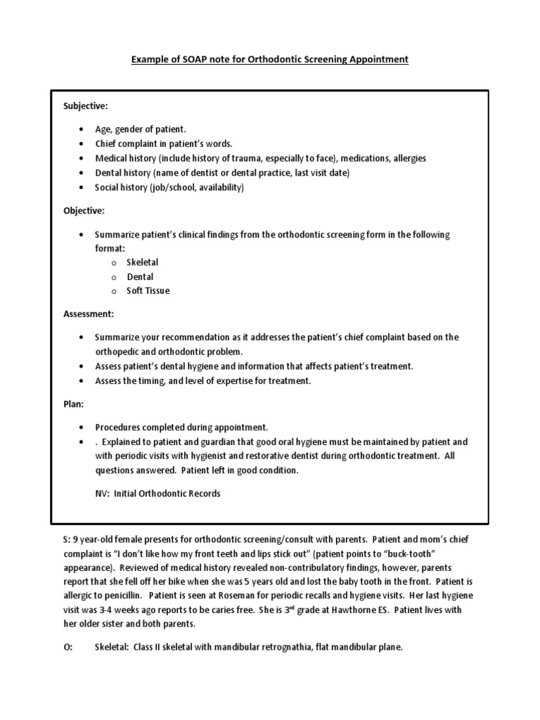 Example of SOAP Notes for Orthodontic Screening Orthodontics Dentistry