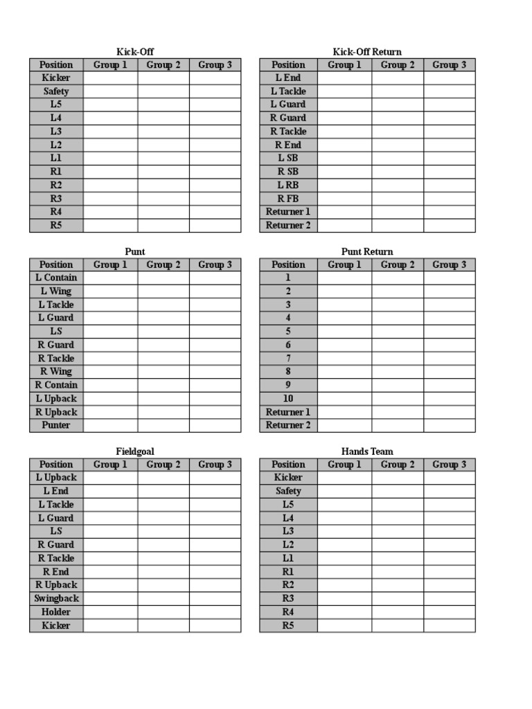 Free Special Teams Depth Chart Download in PDF, Illustrator